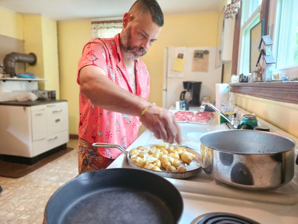 A few of us had planned to do the slack pack challenge, and friends of mine rented a cabin at the hostel. It’s a great perk hiking with a cast iron fanatic and a professional pastry chef because they decided to cook up a feast before our marathon day: steaks, potatoes, and banana cream pie.