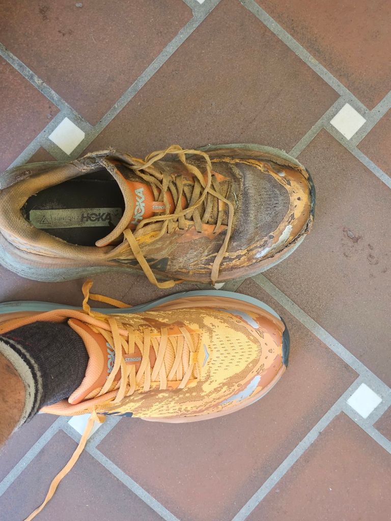As well as eating, I was able to get more of the usual town things accomplished. I resupplied at the grocery store, and I went to the post office, where there was a package waiting for me. I swapped back to my warmer sleeping bag to prepare for heading farther north. I also was able to slip into some brand-new shoes, which I desperately needed to replace.